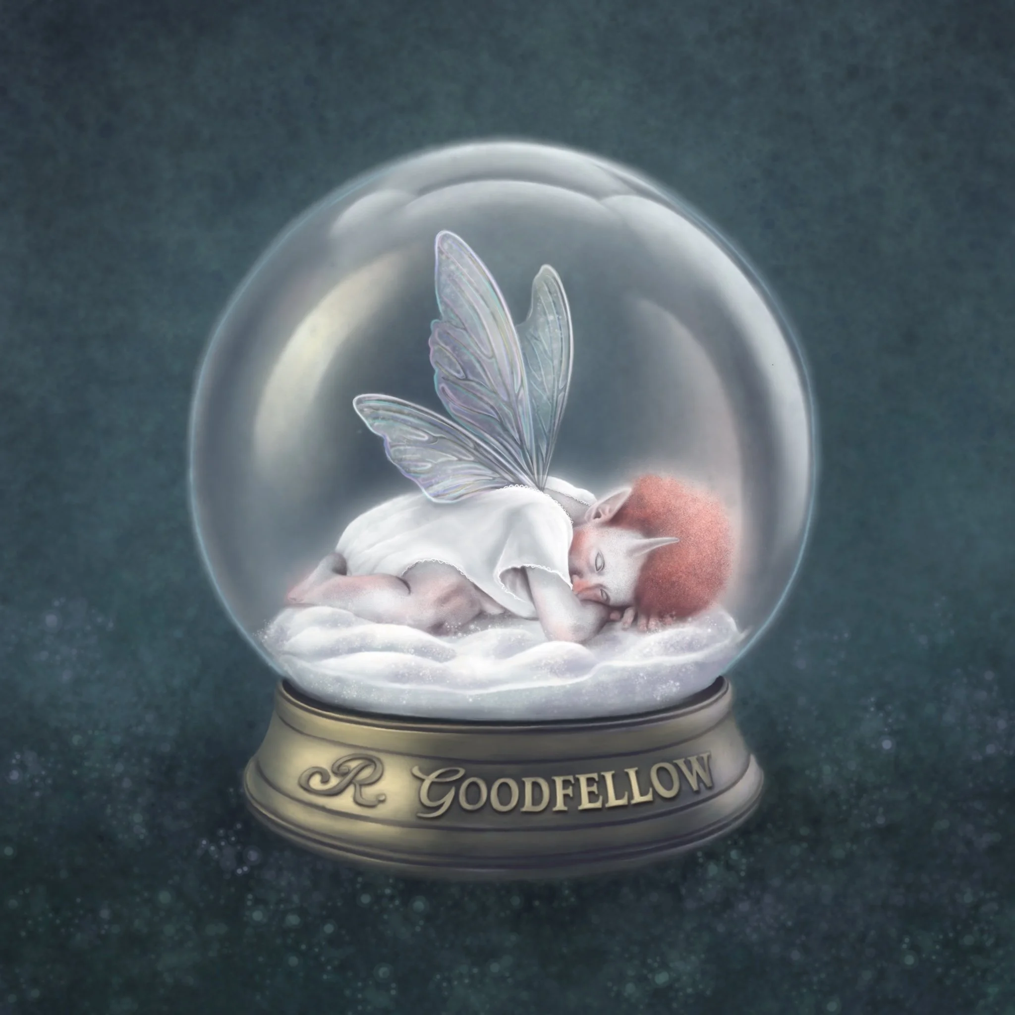 My painting uses the snow globe as a metaphor for the mind, the tiny demon sleeping sound within, waiting for it to get all shaken up.