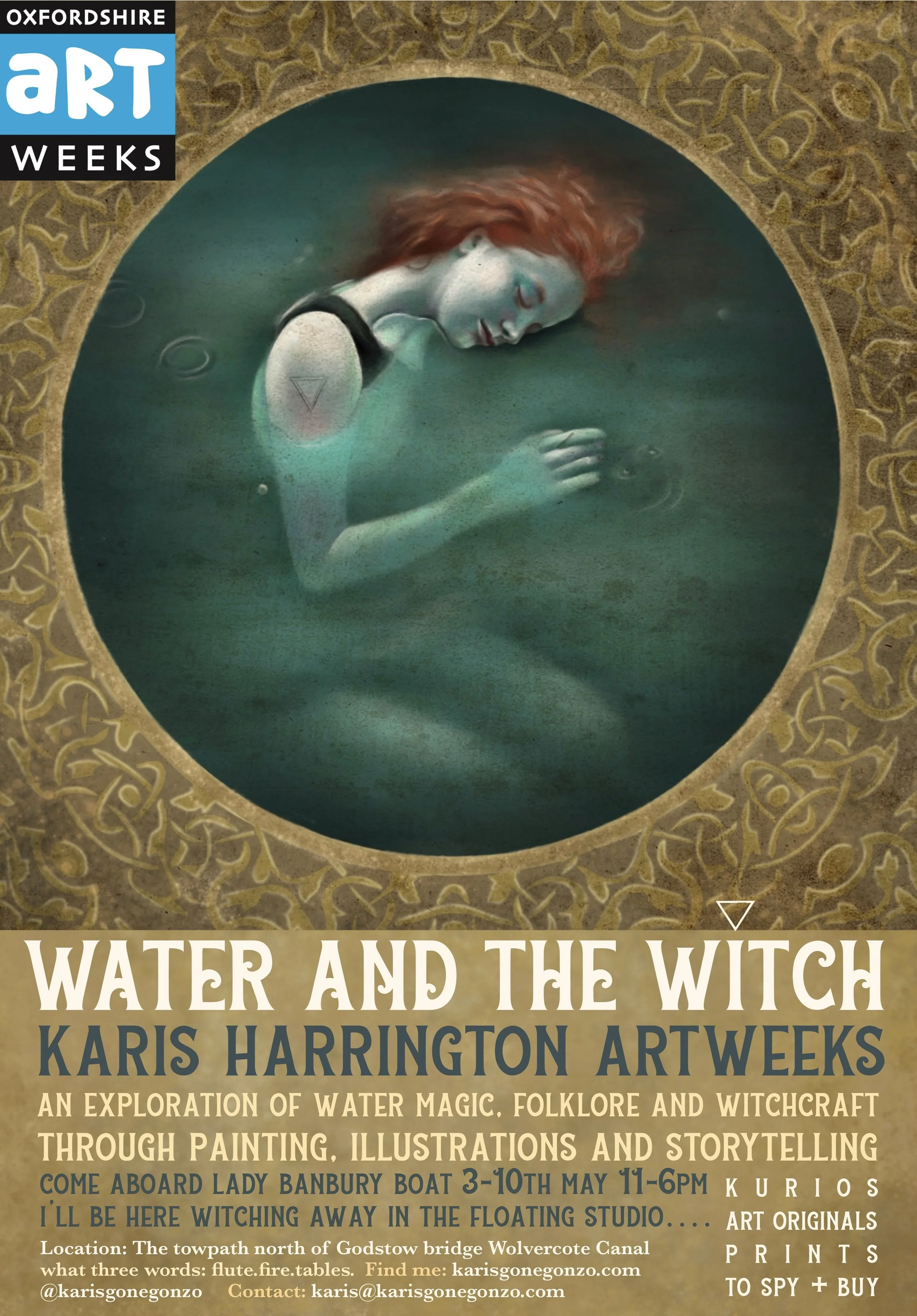 Oxfordshire Artweeks Water and the Witch 3-10th May 11-6pm-I shall be exhibiting a mixture of drawings, paintings and storytelling art aboard the boat. The Towpath, north of Godstow Bridge, Wolvercote
