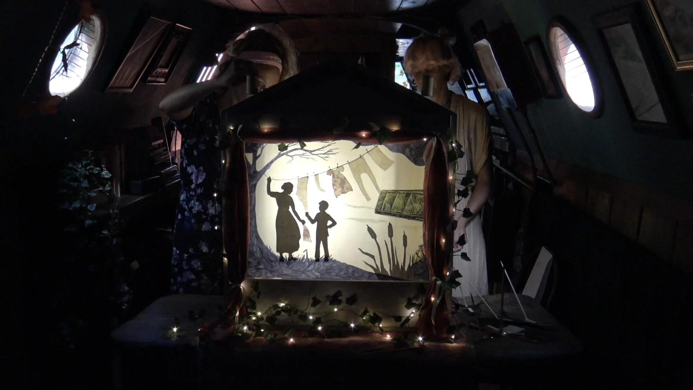 This scroll was based on a true story which we deep dived into to collaborate on this Crankie performance. A real Floating Chapel existed for boat people back in the 19th century. It floated up at Hythe Bridge offering schooling and church services for thirty years befor sadly sinking to the bottom of the canal. Sophie of Kilsby Theatre Boat, cleverly intertwined another story about a real girl and her gran who frequented the boatman’s chapel after gruelling days pulling the horses along the towpath. With a sprinkling of magic and some beautiful music, this story was born.