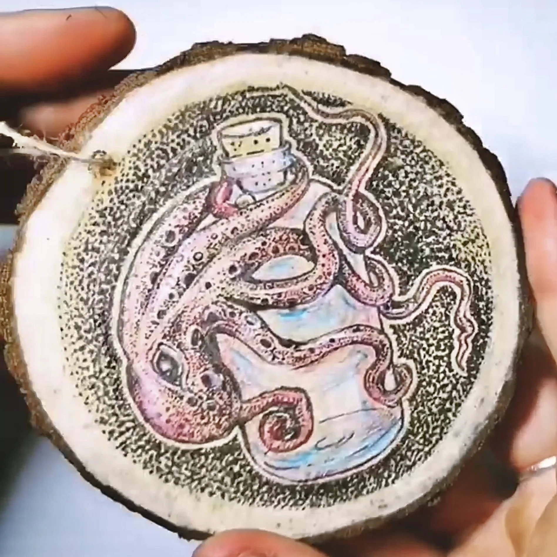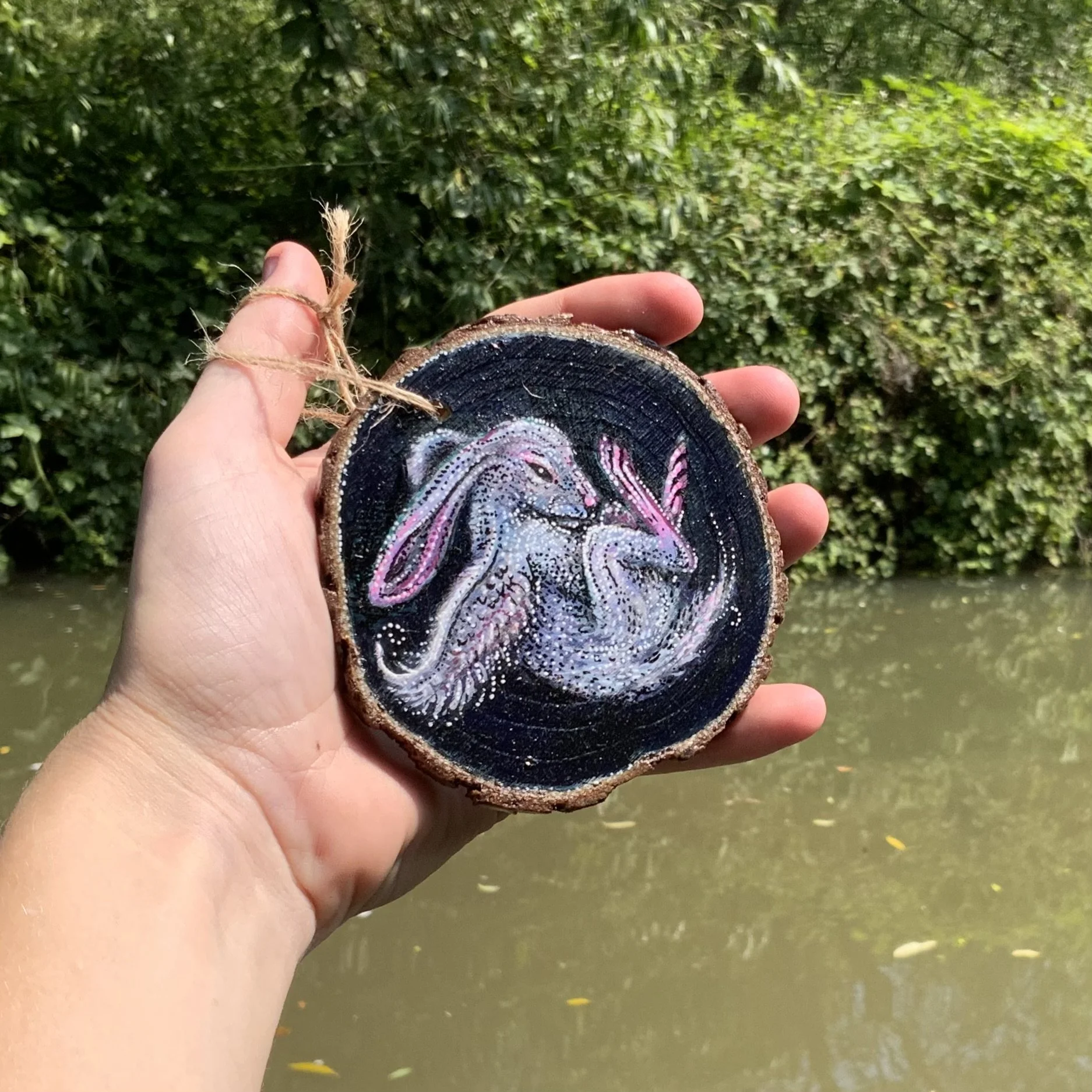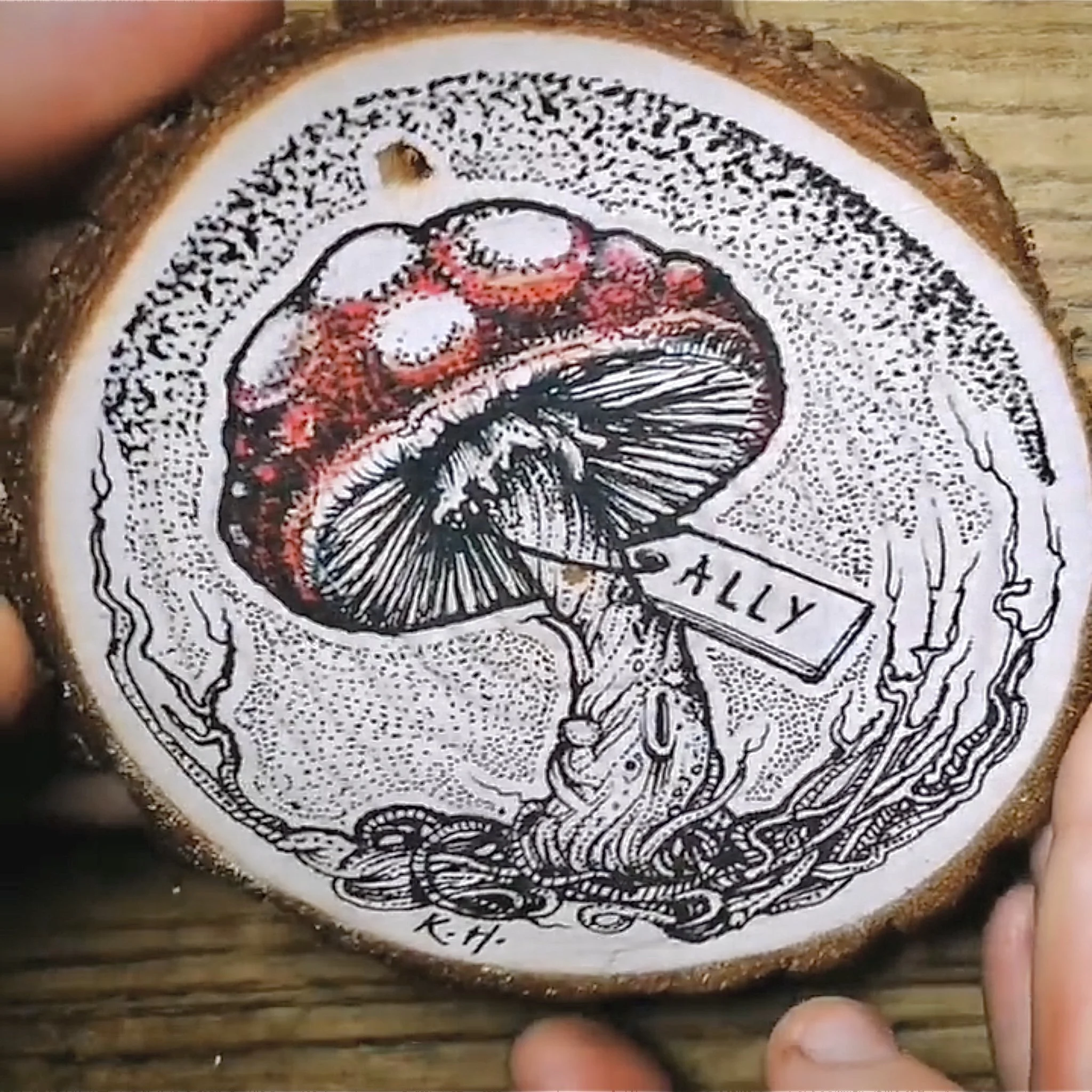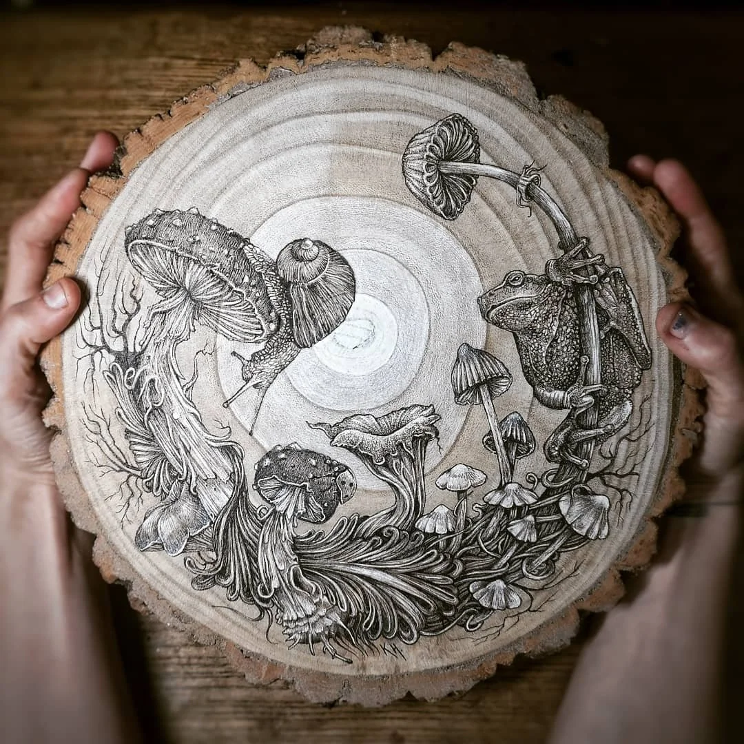 I ink and paint wood slices on commission and sell them at art markets and online in my shop. If you’d like a unique and personal piece of original art, get in touch and drop me an email