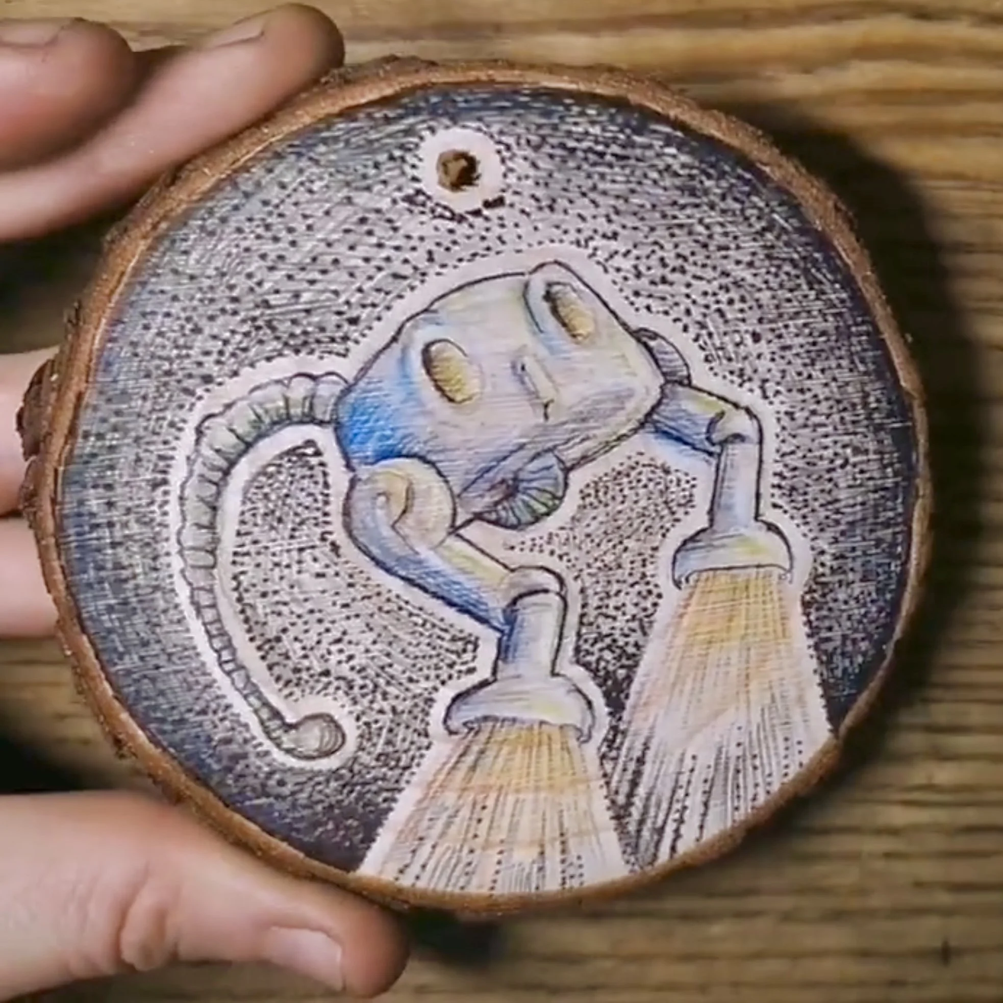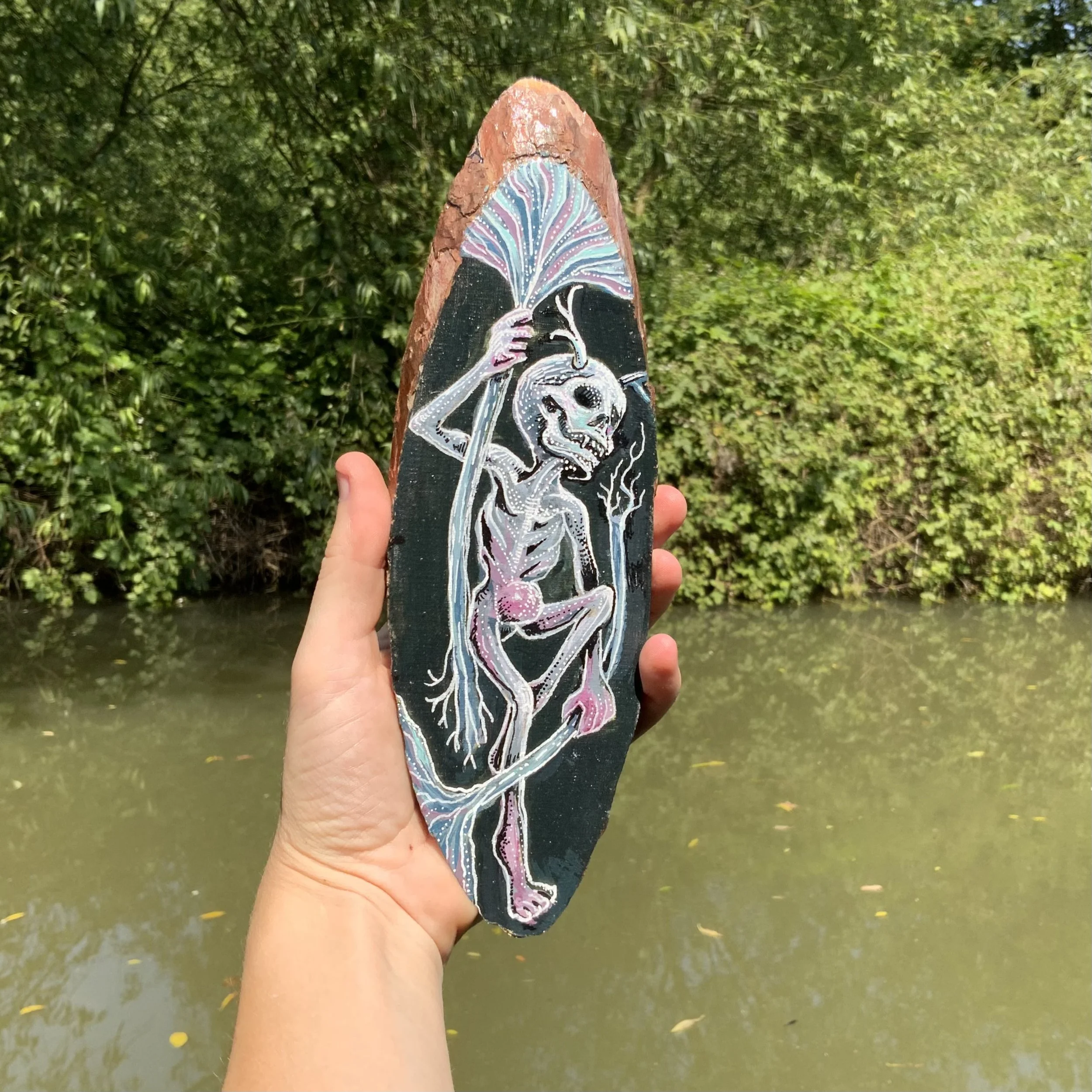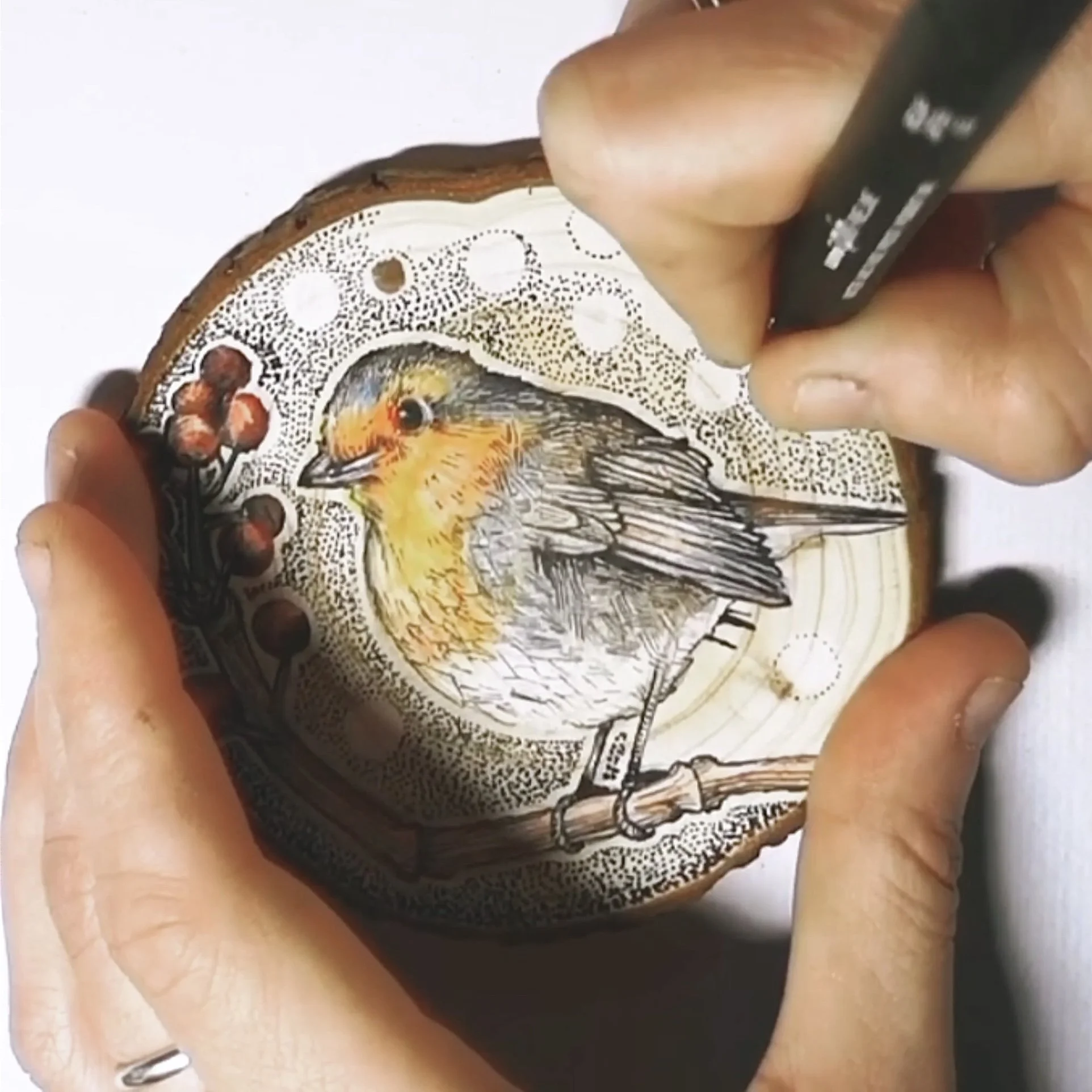I ink and paint wood slices on commission and sell them at art markets and online in my shop. If you’d like a unique and personal piece of original art, get in touch and drop me an email